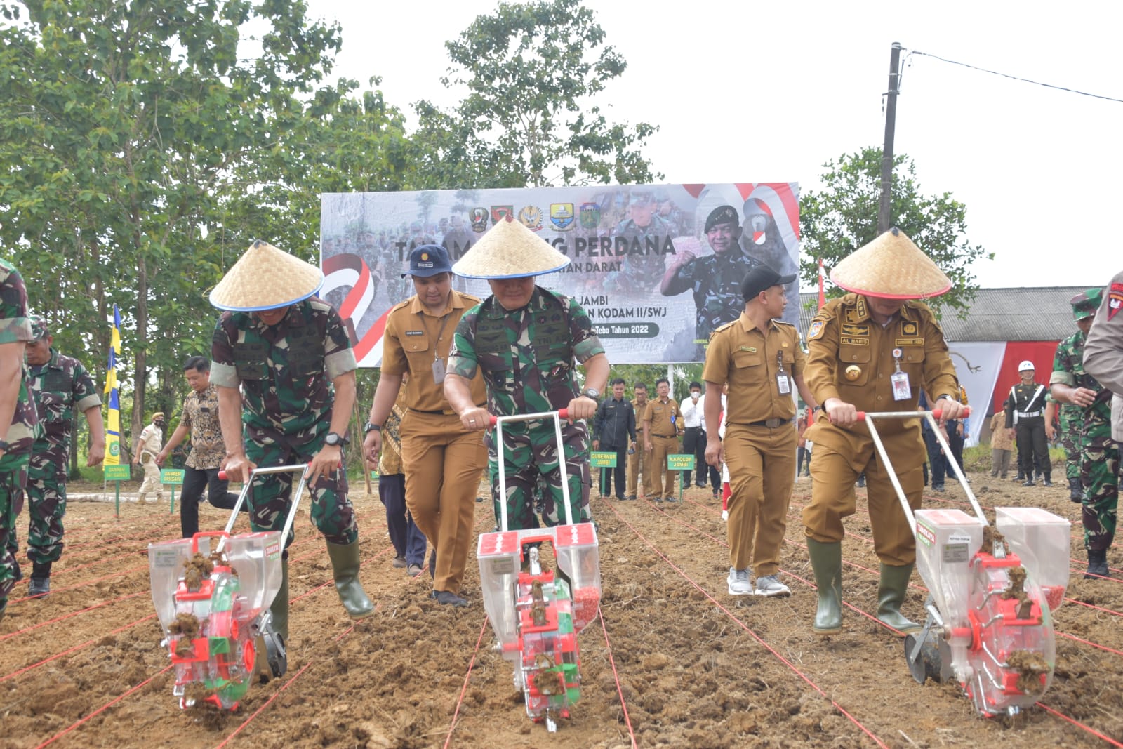 RAMNews.id – Kepala Staf Angkatan Darat (Kasad) Jenderal TNI Dr. Dudung Abdurachman meresmikan launching pembukaan lahan ketahanan pangan dengan melakukan penanaman perdana di lahan milik TNI AD seluas 200 hektar di Kabupaten Tebo, Jambi. Senin, (18/7/2022).