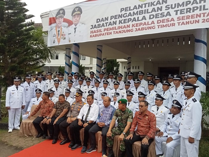 Pelantikan dan pengambilan sumpah kepala desa tersebut dipimpin langsung boleh Bupati Tanjab Timur, Romi Hariyanto, dan dilaksanakan pada pukul 09.00 WIB.